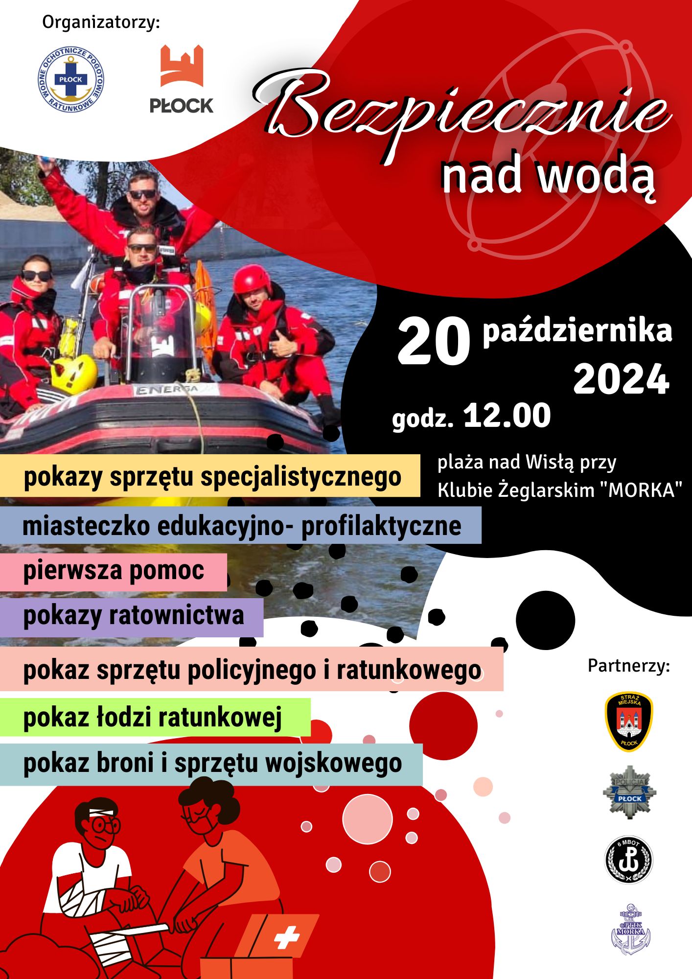 Rejonowe Płockie Wodne Ochotnicze Pogotowie Ratunkowe wspólnie z Urzędem Miasta Płocka w niedzielę 20 października organizują dla mieszkańców Płocka piknik pod nazwą „Bezpiecznie nad wodą”. Celem niedzielnego wydarzenia jest edukacja o bezpiecznych formach wypoczynku nad wodą, a także na popularyzacja wiedzy w zakresie samo-ratownictwa oraz ratownictwa z użyciem tzw. przygodnego sprzętu ratunkowego. Piknik odbędzie się na płockiej plaży, w pobliżu Klubu MORKA, w godzinach 12:00 – 16:00.
