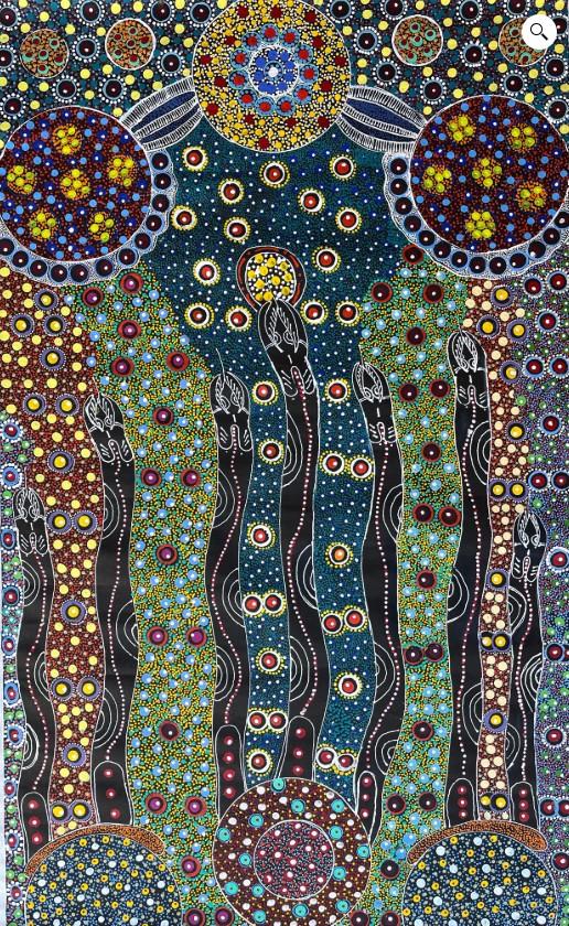 Aborygeni to rdzenni mieszkańcy Australii. Ich przodkowie przybyli na ten kontynent nawet 65 tysięcy lat temu. Są niewątpliwie jednym z najbardziej znanych z nazwy, ale chyba najmniej poznanych i zrozumianych ludów na świecie. Posiadają imponująca tradycję kulturową, a jednocześnie oddziela ich od nas ogromna przepaść cywilizacyjna. Ich kultura jest jedną z ostatnich, jeżeli nie ostatnią, kulturą paleolitu, której udokumentowane ślady liczą sobie co najmniej 60 tysięcy lat. Aborygeni australijscy przekazywali swoje legendy i pieśni z pokolenia na pokolenie. Obrazy powstające w czasie ceremonii opowiadały, a raczej odwzorowywały, historie stworzenia świata przez aborygeńskich przodków. We współczesnym malarstwie aborygeńskim każdy artysta ma inny sposób malowania. Przeważnie obraz powstaje z wielu kropek, czasem łączonych w linie czy kreski. Europejczykom, którzy zatracili bliski związek ze swoimi przodkami, malującymi w jaskiniach Altamiry i Lascaux, kontakt z tą kulturą daje okazję do refleksji nad własnym pochodzeniem. Współczesny odbiorca uzyskuje nie tylko rzadką sposobność wglądu w prapoczątki ludzkiej ekspresji, ale ma też powód do zastanowienia się nad bogatym zbiorem wartości kulturowych. W dobie narastającego zagrożenia ze strony cywilizacji technicznej, zrozumienie wizualnego języka Aborygenów może także przyczynić się do uściślenia pojęć współczesnej estetyki i wpływać na kształt naszych przyszłych przedstawień wizualnych.